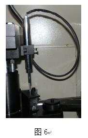 ⑵ 把位移傳感器插到位移固定架上的圓孔內(nèi)。