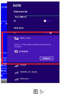 打開電腦的“無線網(wǎng)絡(luò)列表”后,會(huì)發(fā)現(xiàn)有WIFI_xxxx為名稱的無線網(wǎng)絡(luò)(見圖3),此網(wǎng)絡(luò)就是車轍儀使用的WIFI名稱,然后把此網(wǎng)絡(luò)連接后,打開軟件。