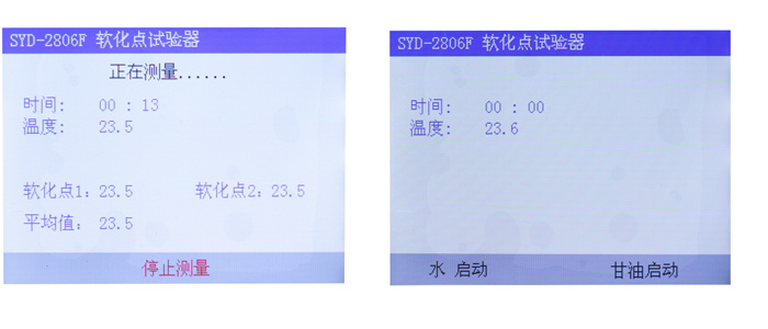 (2) 當(dāng)試樣軟化點(diǎn)>80℃,32.0℃~160.0℃,試驗(yàn)浴液體使用甘油作為加熱介質(zhì)