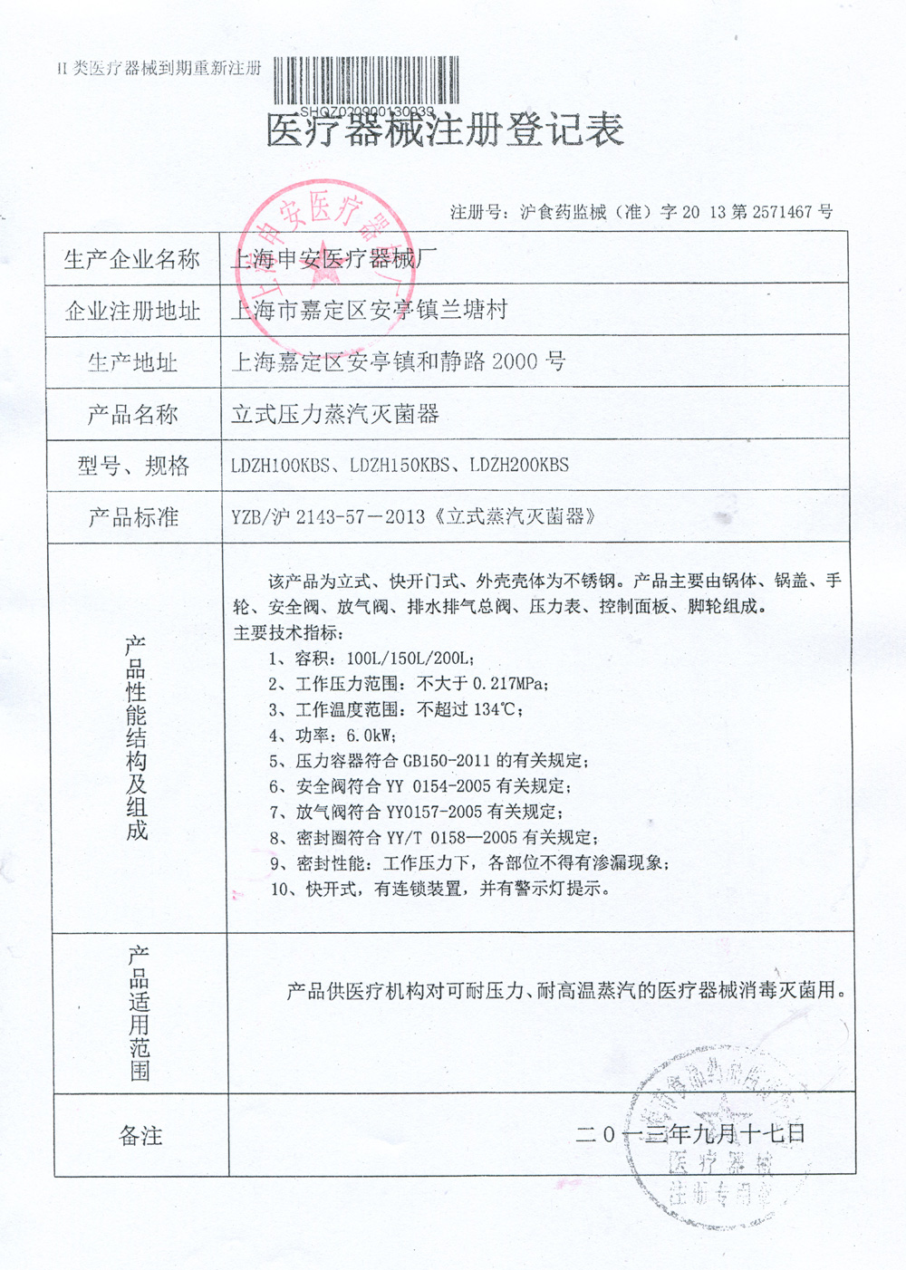滬食藥監(jiān)械(準)字2013第2571467號